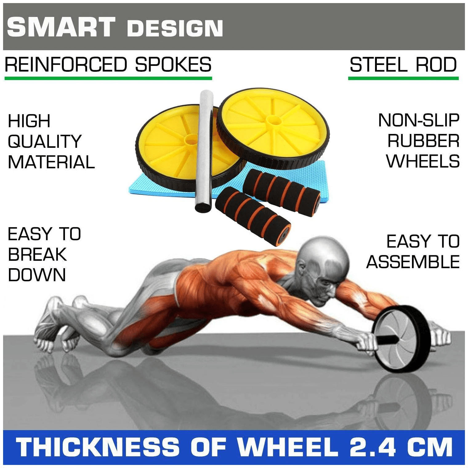 Safe and Stable: Equipped with soft EVA foam handles and an anti-slip roller to give you a comfortable, smooth, and stable workout session.